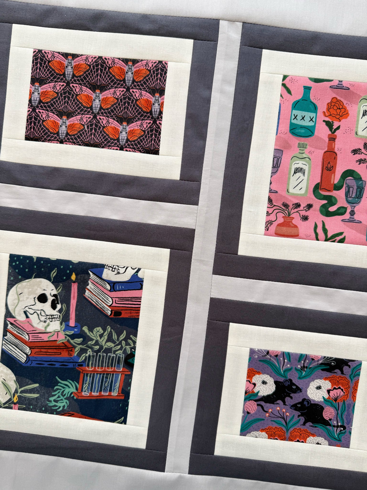 This quilt makes a perfect scrap busting quilt, especially for those central images in the frames. Pair with some solids or blenders to make the prints the centrepiece.